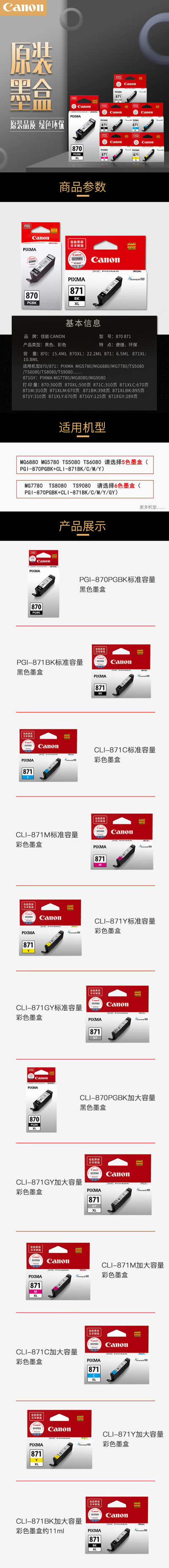 商品名称:佳能(Canon)PGI-871 GY灰色墨盒